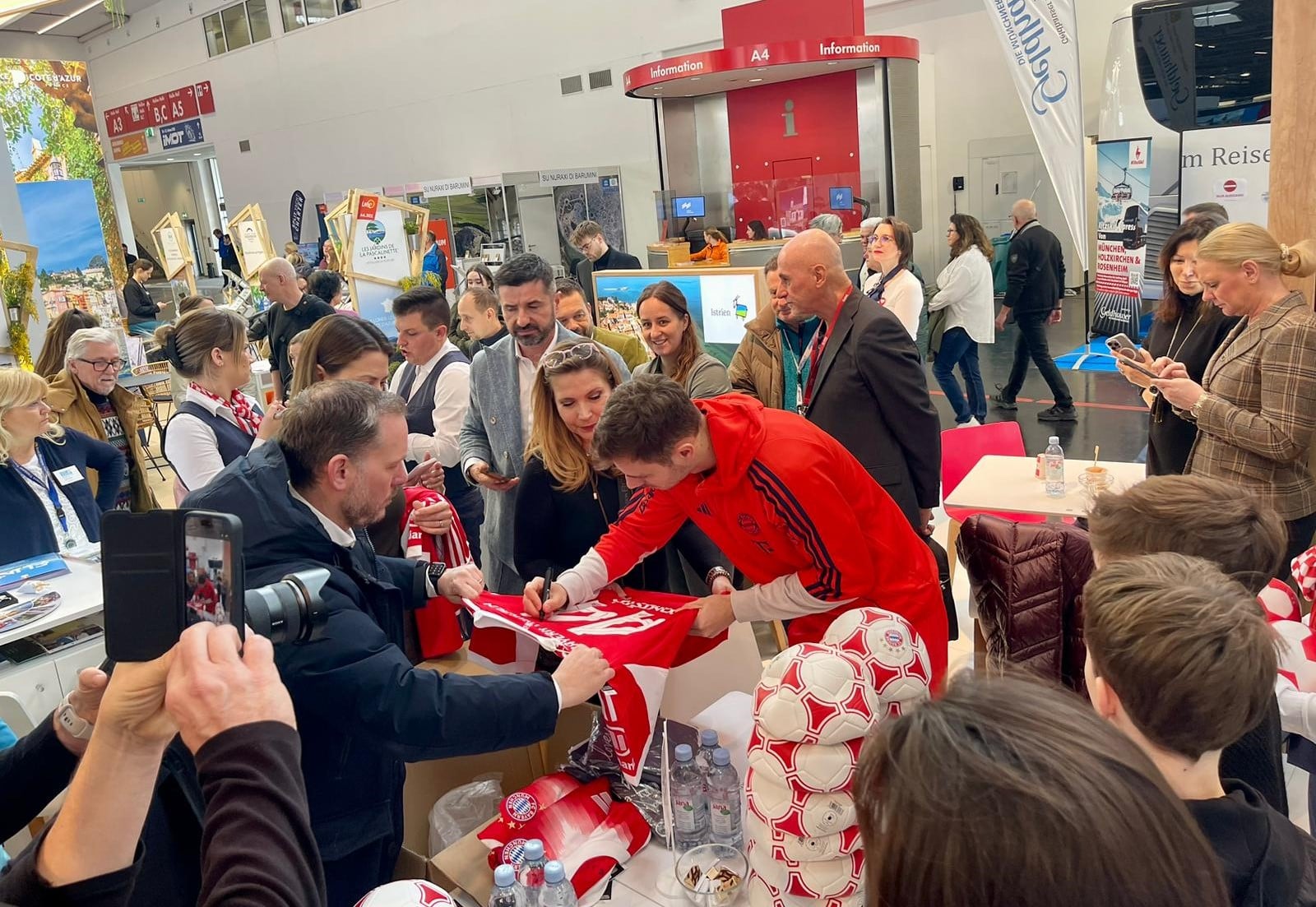 Veliko oduševljenje posjetitelja hrvatskog štanda izazvalo je prisustvo Josipa Stanišića, hrvatskog nogometnog reprezentativca i igrača nogometnog kluba FC Bayern München koji je u društvu ministra Glavine i direktora Staničića obišao izložbeni prostor naše zemlje, a sve zahvaljujući strateškom partnerstvu između HTZ-a, TZ Istre i FC Bayern Münchena.