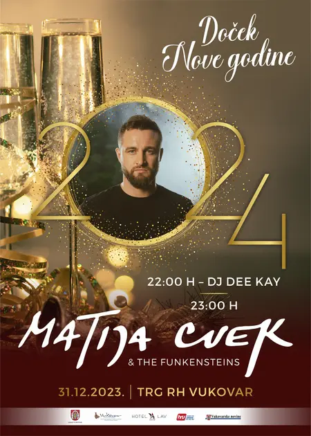 Najluđa noć u godini je pred nama! Provedite je u dobrom društvu na glavnom gradskom trgu u Vukovaru uz koncert jednog od najtraženijih glazbenika sadašnjice Matiju Cveka i bend The Funkensteins! Zagrijavanje uz DJ-a počinje u 22 sata!
