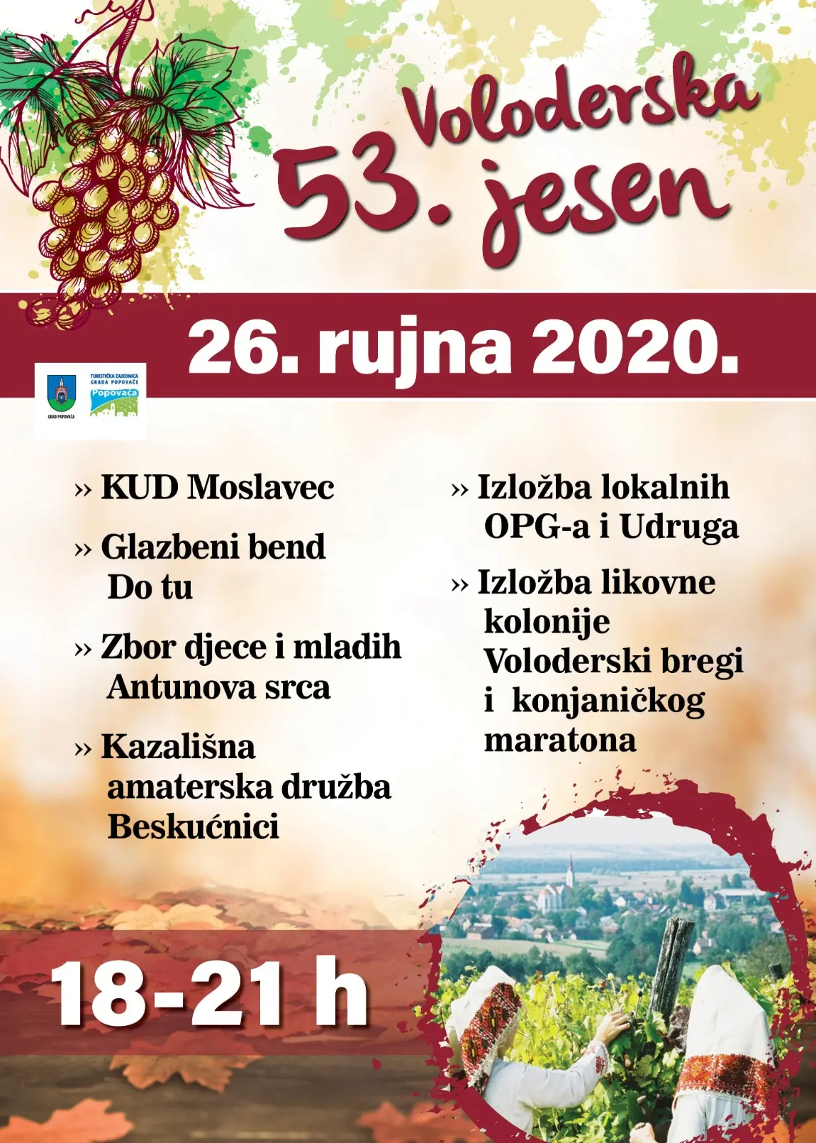 Voloderska jesen, kulturno-gospodarska manifestacija posvećena berbenim običajima, ove je godine održana 53. put. Umjesto dosadašnjeg višednevnog programa, a s obzirom na sve okolnosti, 53. Voloderska jesen obilježena je jednodnevnim programom.