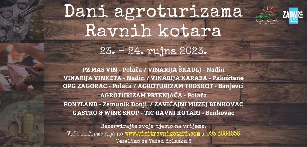 Manifestacija promovira ruralni poljoprivredni i gastronomski identitet zadarskog zaleđa. Dani agroturizma su svojevrsna tradicija koju iz godine u godinu svi vjerno iščekuju.